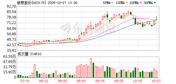 2017年3月17日,新泉股份成功上市,股票代码603179,这也成为新泉股份发展史上的里程碑。2017年,新泉股份实现营业收入30.95亿元配股宝,比上年同期上升80.91%,净利润2.5亿元,同比上升120.07%。